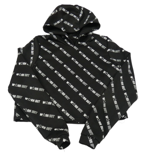 Čierna crop športová mikina s nápismi a kapucňou