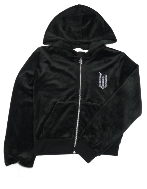 Čierna zamatová prepínaci mikina s kapucňou H&M