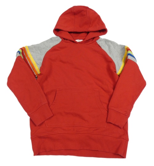 Červeno-sivá mikina s farebnymi pruhmi a kapucňou
