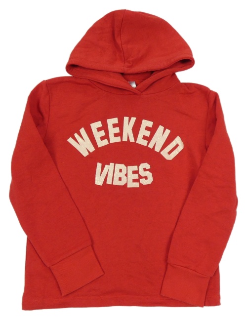 Červená mikina so trblietavymi nápisy a kapucňou C&A