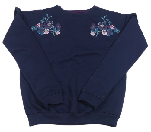 Tmavomodrá mikina s kvietkami a volánikmi Y.F.K.