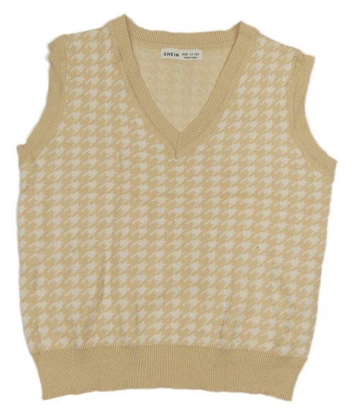 Béžovo-biela vzorovaná úpletová crop vesta SHEIN