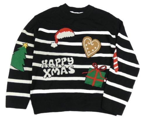 Čierno-biely pruhovaný sveter s vánočním motívom H&M