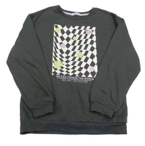 Tmavosivá mikina s potlačou a kvietkami Primark