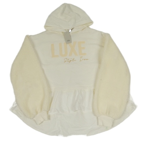 Nové - Biela mikina s s nápisem, huňatymi rukávy a kapucňou River Island