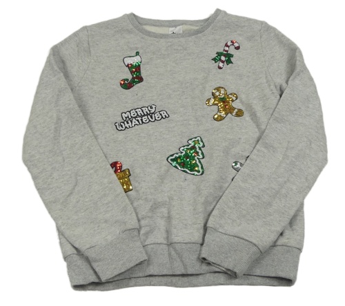 Sivá melírovaná mikina s vánočními obrázky z flitrů C&A