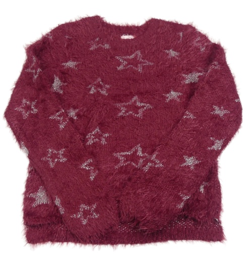 Vínový chlpatý sveter s hviezdičkami POCOPIANO