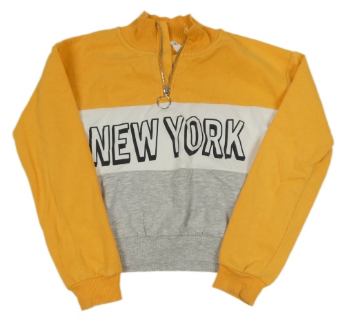 Hořčicovo-bielo-sivá crop mikina s nápisom H&M