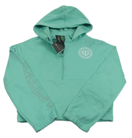 Nové - Mátová prepínaci crop mikina s potlačou a kapucňou