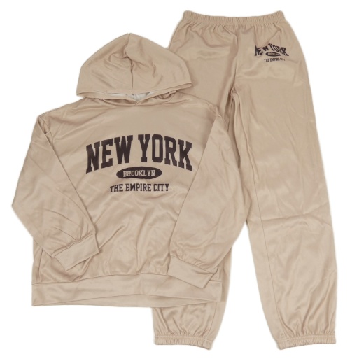 2set - Oranžovobéžová mikina s nápisom a kapucí + nohavice Shein