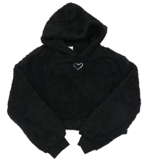 Čierni chlpatá crop mikina so srdcem a kapucňou Shein