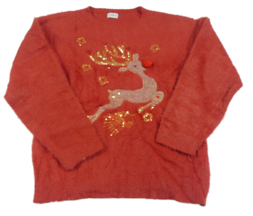 Vínový chlpatý sveter so sobom s flitrami F&F