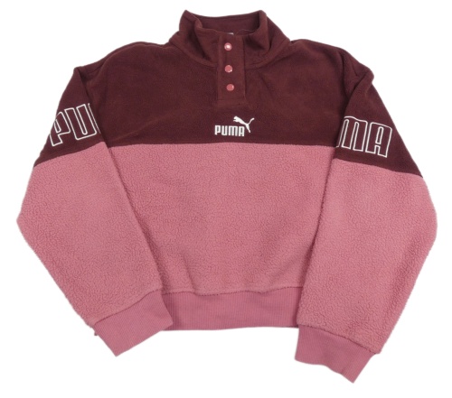 Vínovo-ružová fleecová crop mikina Puma