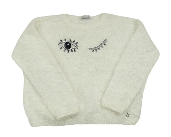 Smotanový chlpatý sveter s očima z flitrů Yigga