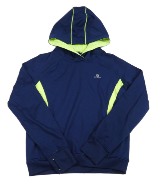 Tmavomodrá športová funkčná mikina s pruhmi a kapucňou Decathlon