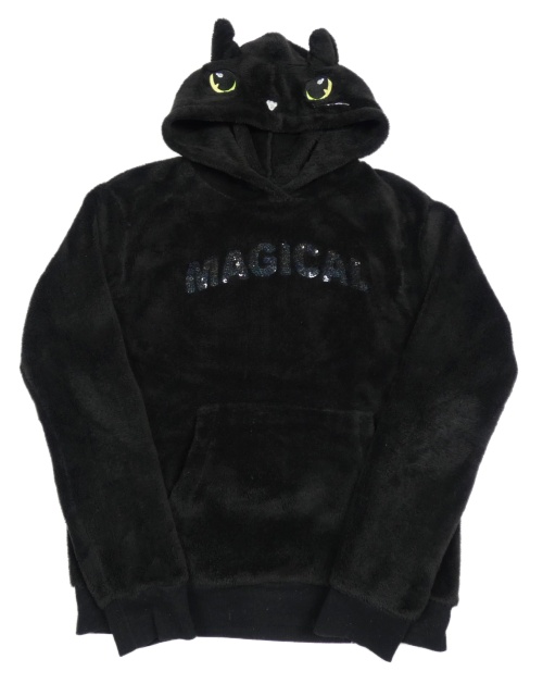 Čierna chlpatá mikina s nápisem z flitrů a kapucňou H&M