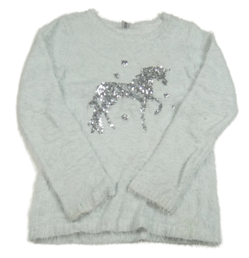 Svetlomodrý chlpatý sveter s jednorožcem z flitrů Yigga