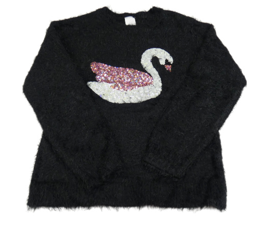 Čierny chlpatý sveter s labutí z flitrů C&A