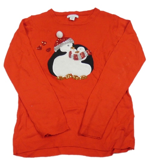 Červený ľahký sveter s tučňáky s flitrami Primark
