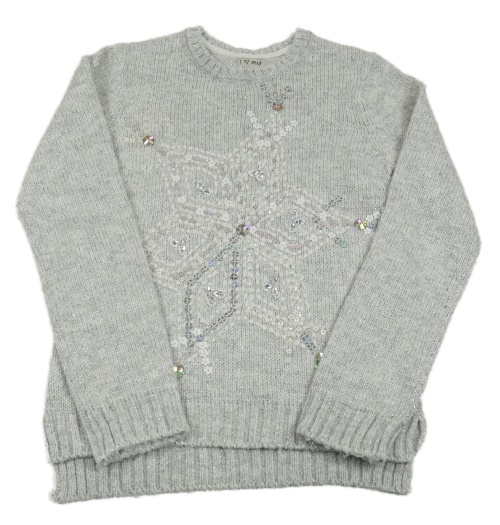 Sivý melírovaný trblietavý sveter s vločkou s flitrami a kamienkami Next