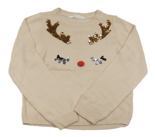 Svetlobéžový sveter so sobem z flitrů H&M