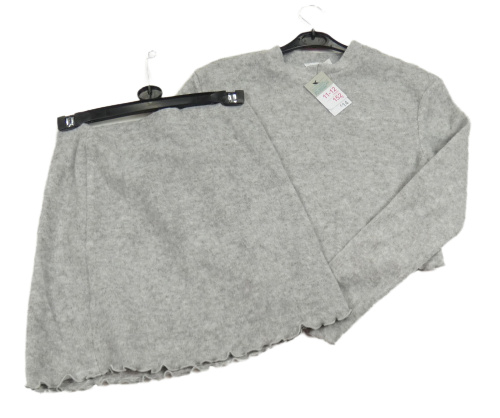 Nový - 2Set - Sivá melírovaná úpletová crop mikina + sukňa PRIMARK
