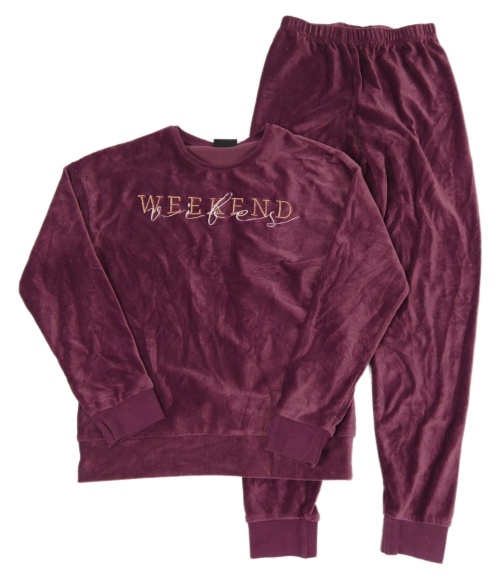 2Set - Vínová rebrovaná zamatová mikina s nápisy + tepláky C&A