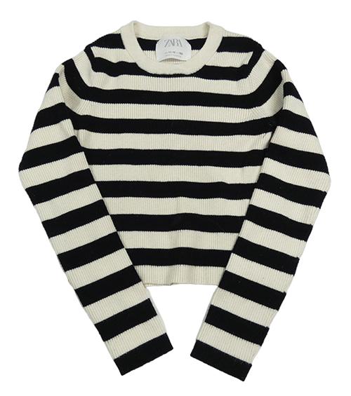 Bielo-čierny pruhovaný rebrovaný crop sveter ZARA