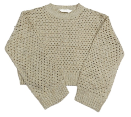 Světlebéžovo-biely melírovaný ažurový pletený crop sveter H&M
