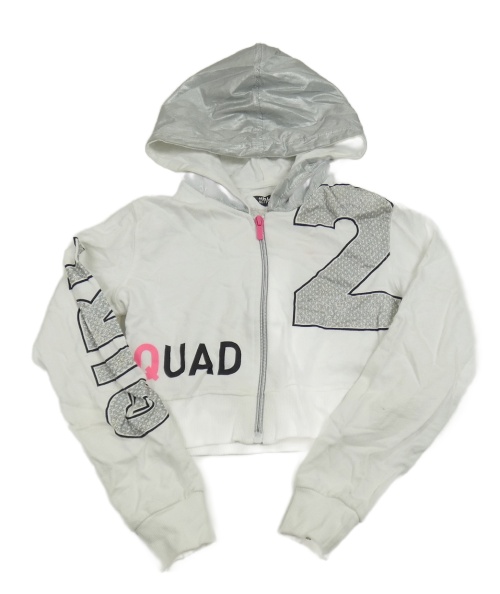 Bielo-strieborná crop mikina s nápisom a kapucňou