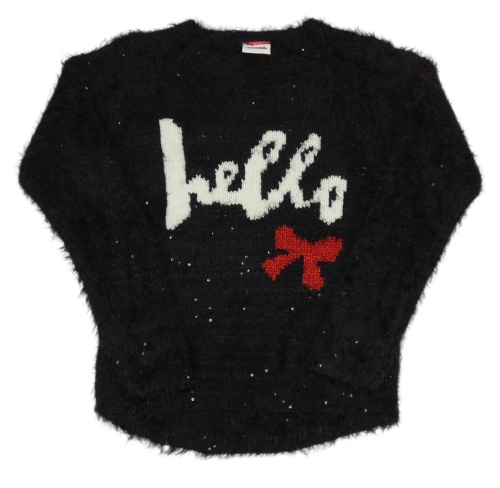 Čierny chlpatý flitrový sveter s nápisom Yigga