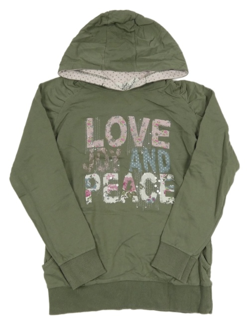 Khaki mikina s nápisom a flitrami a kapucňou C&A