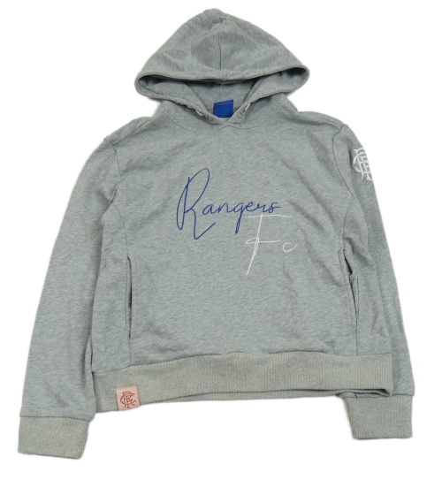 Šedá melírovaná fotbalová mikina Rangers a kapucňou