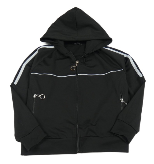 Čierna športová prepínaci mikina s kapucňou a pruhmi
