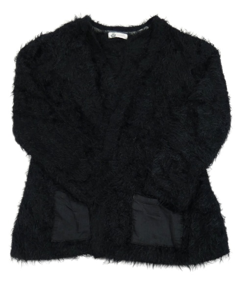 Tmavomodrý chlpatý svetrový cardigan H&M