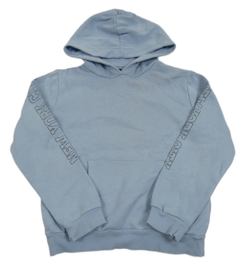 Svetlomodrá mikina s nápisem na rukávech a kapucňou C&A