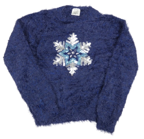 Tmavomodrý trblietavý chlpatý sveter s vločkou z flitrů a kamínků Lily & Dan