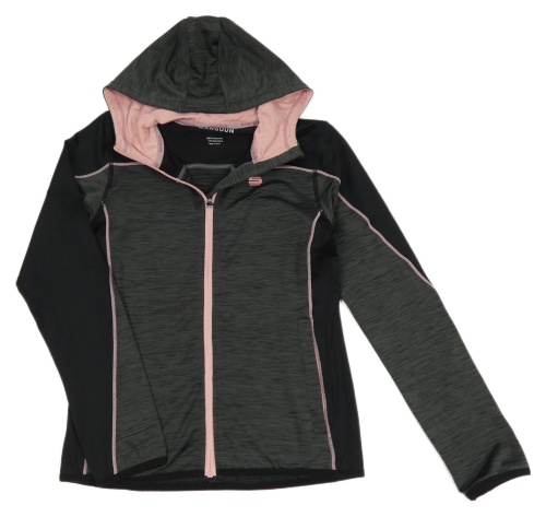 Sivo-čierno-ružová melírovaná prepínaci športová mikina s kapucňou Manguun