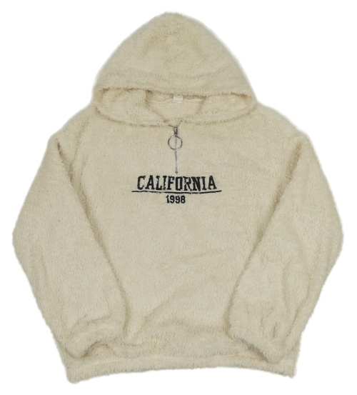 Svetlobéžová chlpatá mikina s nápisom a kapucňou Shein
