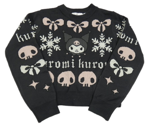 Antracitový crop sveter s mašličkami a Kuromi H&M