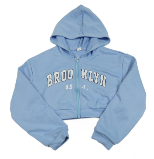 Svetlomodrá prepínaci crop mikina s nápisom a kapucňou Shein