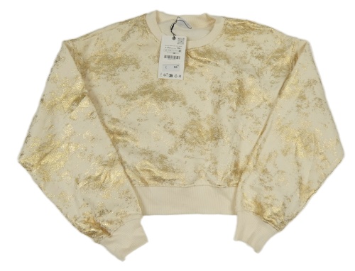 Nová - smetanovo-zlatá vzorovaná tepláková crop mikina ZARA