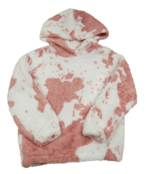 Bielo-staroružová batikovaná chlpatá mikina s kapucňou