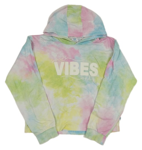 Farebná batikovaná crop mikina s nápismi a kapucňou