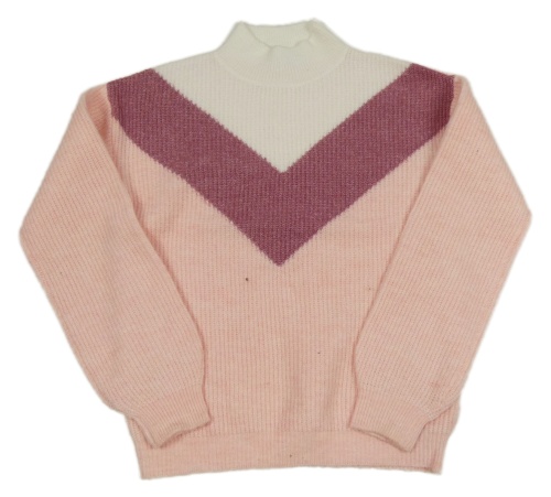 Svetloružová -vínovo-biely rebrovaný svetrový rolák PRIMARK