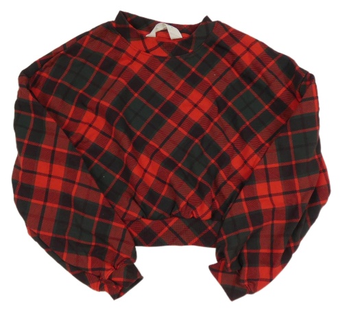 Červeno-kaki-čierna károvaná crop mikina H&M