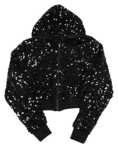 Čierna flitrovaná prepínaci crop mikina s kapucňou H&M