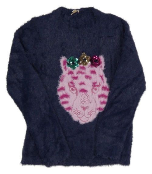 Tmavomodrý chlpatý sveter s tigrom Du Pareil