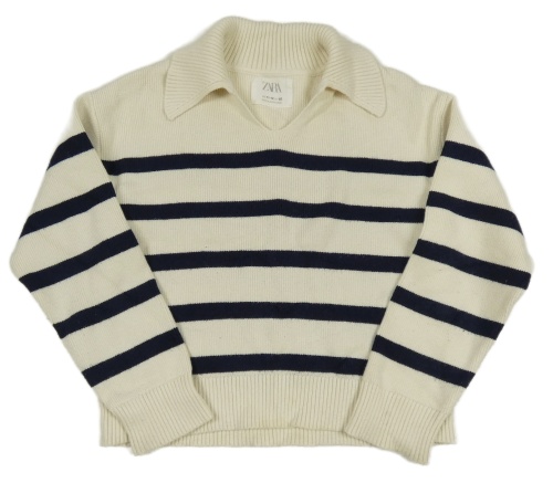 Bielo-tmavomodrý pruhovaný sveter s golierikom Zara