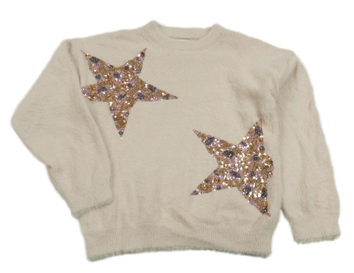 Svetloružový chlpatý sveter s hvězdami z flitů F&F